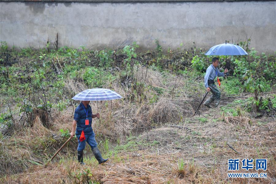 在益陽市大通湖區(qū)東大堤,工作人員在進(jìn)行清基掃障(7月8日攝)。新華社記者陳澤國攝