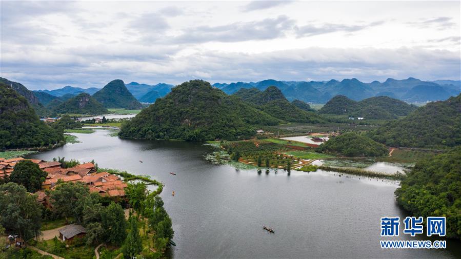 這是7月9日拍攝的普者黑國家濕地公園一景(無人機照片)。新華社記者胡超攝