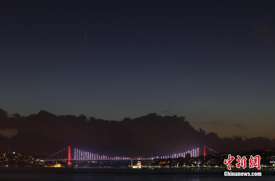 當?shù)貢r間7月12日,土耳其伊斯坦布爾,當?shù)匾箍罩锌捎^測到NEOWISE彗星。圖片來源:視覺中國