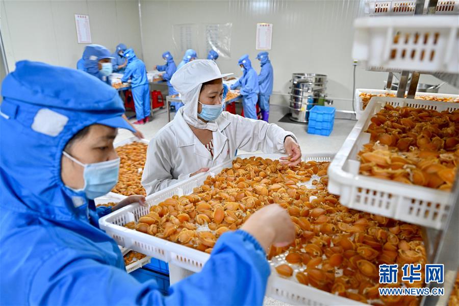 7月14日,福建省連江縣一家鮑魚加工企業(yè),工人在搬運鮑魚產(chǎn)品。新華社記者 姜克紅 攝