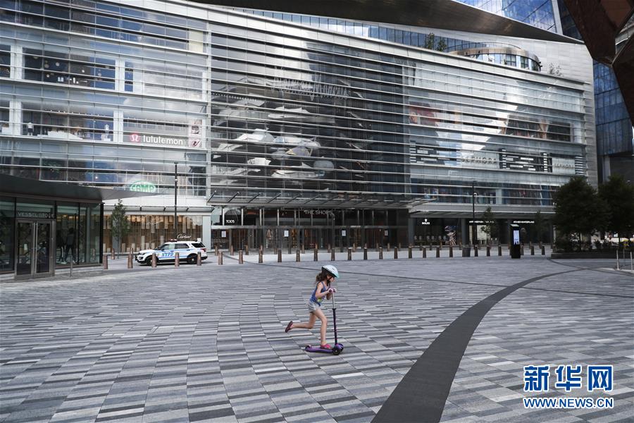 7月14日,在美國紐約一家尚未恢復(fù)店內(nèi)購物的購物中心外,一名女孩在空曠的廣場上玩耍。美國約翰斯·霍普金斯大學(xué):截至北京時(shí)間15日6時(shí)34分,全球新冠確診病例達(dá)13258016例,死亡病例為576752例。美國是全球疫情最嚴(yán)重的國家,確診病例達(dá)3416222例,死亡病例為136319例。新華社記者 王迎 攝