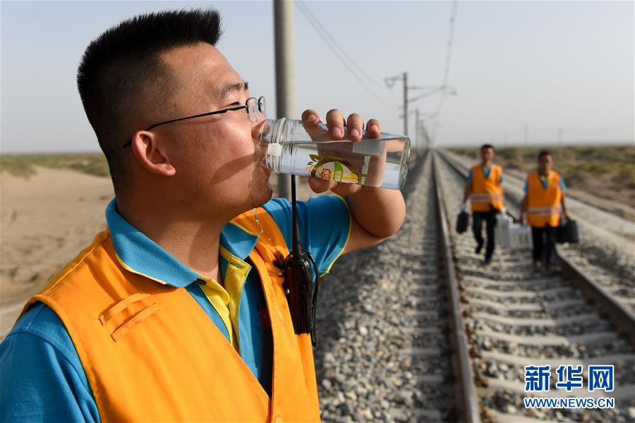 工作間隙,技術(shù)員休息喝水(7月14日攝)。新華社記者 丁磊 攝