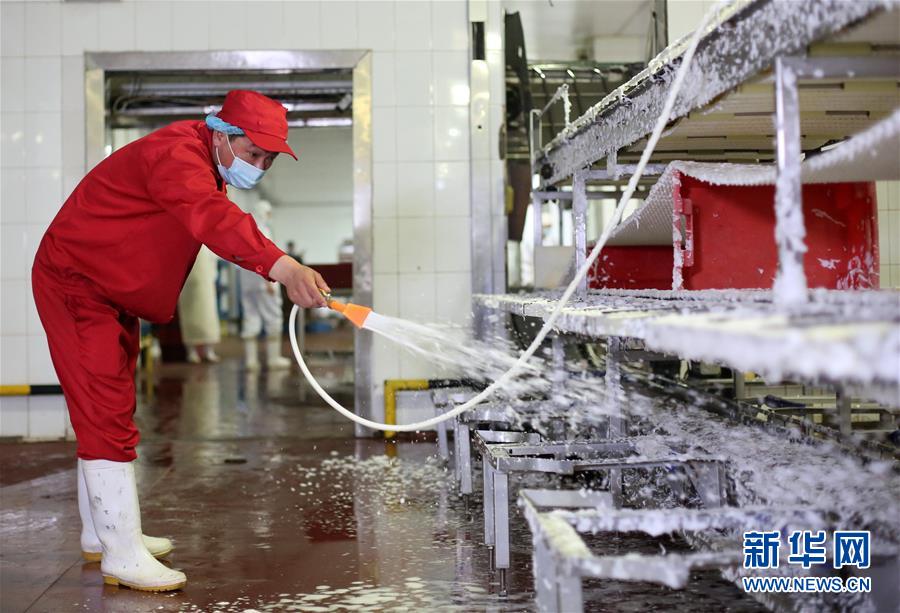 7月14日,北京二商肉類食品集團(tuán)有限公司員工對肉類分割流水線進(jìn)行清洗消毒。北京二商肉類食品集團(tuán)有限公司是保障北京肉類市場供應(yīng)的主要企業(yè)之一。新冠肺炎疫情以來,企業(yè)嚴(yán)格實施北京市、農(nóng)業(yè)農(nóng)村部和中國肉類協(xié)會的防疫要求,對進(jìn)入廠區(qū)的人員、車輛以及原料采購、屠宰分割、產(chǎn)品加工、貯藏運輸、廢棄物收集及污水處理等生產(chǎn)環(huán)節(jié)嚴(yán)格防疫,強(qiáng)調(diào)源頭把關(guān)徹底消毒。目前,集團(tuán)公司下屬多家生豬屠宰加工基地正常運營,保質(zhì)保量供應(yīng)北京市場需求。新華社記者 李欣 攝