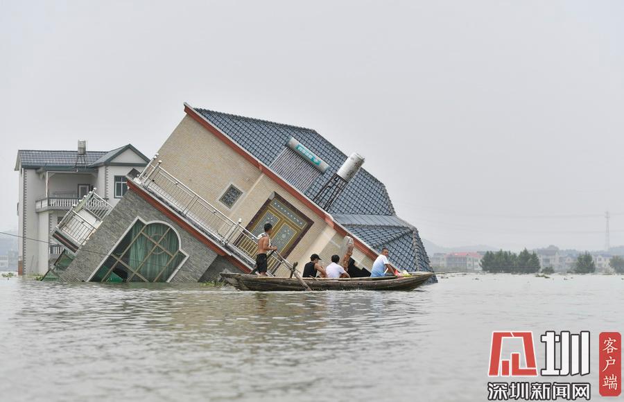 2020年7月15日,江西省鄱陽縣油墩街鎮(zhèn)同興村,村莊受到洪水圍困,大部分村民已經(jīng)被轉(zhuǎn)移出去,仍有少數(shù)村民選擇留守家中積極自救繼續(xù)生活。7月8日晚,鄱陽縣油墩街鎮(zhèn)西江因特大暴雨出現(xiàn)漫堤決口,5個(gè)行政村被洪水圍困,數(shù)萬名群眾被及時(shí)疏散轉(zhuǎn)移。同興村村民張瑤康回憶起了當(dāng)時(shí)的場景,“水一下子就涌進(jìn)來,等緩過神來趕緊向二樓轉(zhuǎn)移一樓的物品。洪水來時(shí)只從一樓搶到了一些輕便易拿的東西,冰箱、洗衣機(jī)之類的大物件,至今仍浸泡在一樓水中?!?5日,記者跟隨張瑤康乘船回家,抵達(dá)后看到,一樓淹沒在水中,一個(gè)綁在二樓護(hù)欄的木梯成為進(jìn)出“家門”的唯一通道?!懊刻靹澊ゴ謇镞\(yùn)送水和食物,家里有煤氣罐和灶臺(tái)。因?yàn)?0多歲的老母親行動(dòng)不便,我們選擇留守家中?!薄半m然對岸就有安置點(diǎn),但還是更愿待在自己家里,一來是不愿意給政府添麻煩,二來能每天看著自己的房子心里踏實(shí)?!蓖d村村民張長來夫婦帶著剛剛領(lǐng)到的大米、方便面、飲用水乘船回到家中。記者在現(xiàn)場看到,隨著各方救援力量和物資的匯聚,被洪水圍困的村民生活雖有不便,但生活仍在繼續(xù)。“房子不倒,家就在,我們要積極面對,早日重建家園?!睆埇幙蹈嬖V記者。