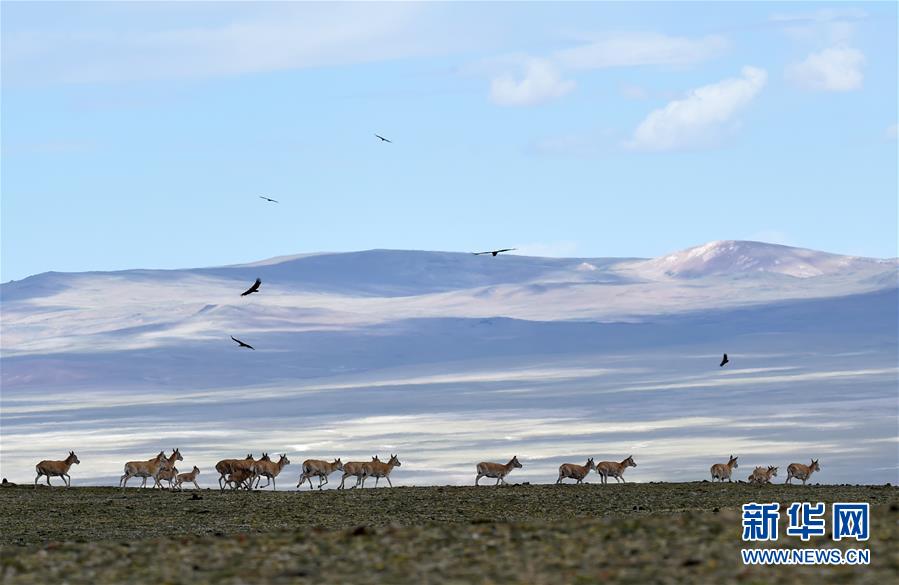 7月17日在西藏尼瑪縣榮瑪鄉(xiāng)附近拍攝的藏羚羊群。2000年,西藏羌塘自然保護(hù)區(qū)晉升為國(guó)家級(jí)自然保護(hù)區(qū)。20年來,經(jīng)過西藏各級(jí)各部門的不懈努力,羌塘國(guó)家級(jí)自然保護(hù)區(qū)內(nèi)的重點(diǎn)保護(hù)野生動(dòng)物種群數(shù)量明顯增加,其中,藏羚羊種群數(shù)量由原來的5至7萬只,恢復(fù)到目前的15萬只以上。羌塘國(guó)家級(jí)自然保護(hù)區(qū)核心地帶的西藏尼瑪縣榮瑪鄉(xiāng)附近,目前就有近6萬只藏羚羊。新華社記者覺果攝