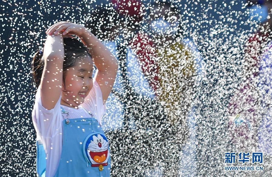 7月24日,一名小女孩在北京華熙LIVE·五棵松商業(yè)街區(qū)的一處噴泉戲水。北京市氣象局7月24日傍晚發(fā)布稱,24日截至16時30分,平原大部分地區(qū)出現(xiàn)37℃以上高溫天氣,局地氣溫超過40℃。北京市已于23日發(fā)布高溫藍(lán)色預(yù)警,預(yù)計(jì)25日全市大部分地區(qū)日最高氣溫仍將達(dá)35℃以上。新華社記者陳曄華攝