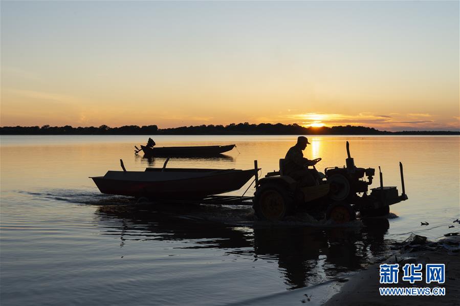7月24日,漁民在大力加湖中捕魚歸來。大力加湖位于“中國東極”黑龍江省撫遠(yuǎn)市,面積28.5平方公里,兩岸地勢低平,多濕地、草原,湖內(nèi)水產(chǎn)豐富。夏日傍晚時(shí)分,漁民捕魚歸來,美麗畫卷映入眼簾。新華社記者謝劍飛攝