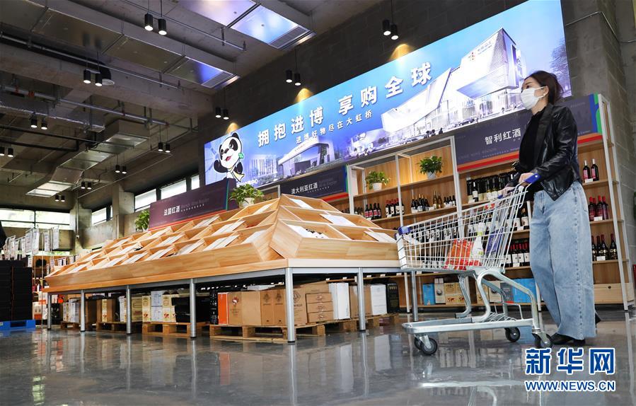 2020年4月25日,“擁抱進博·享購全球”虹橋品匯食品健康館在上海虹橋進口商品展示交易中心開業(yè),顧客在虹橋品匯食品健康館購物。新華社記者 方喆 攝