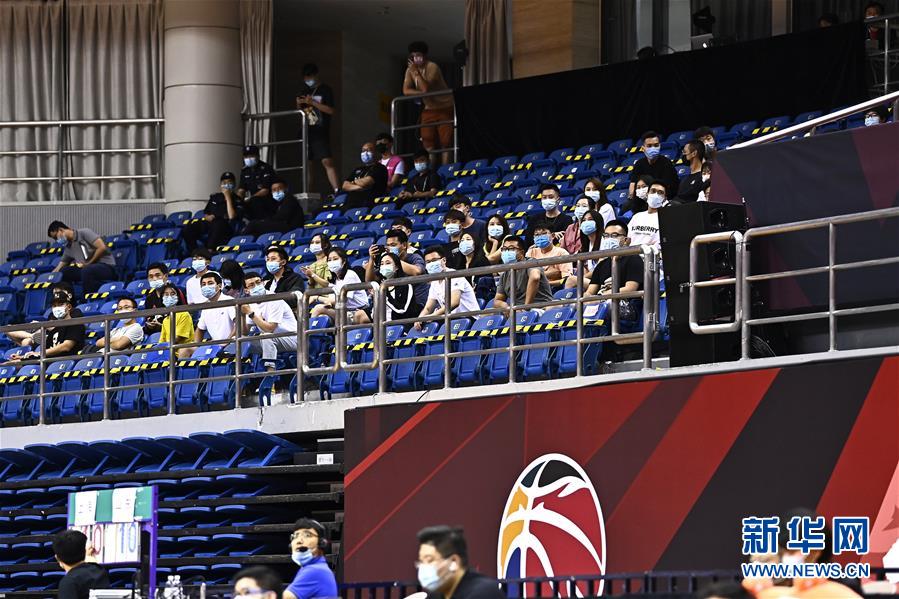 7月26日,觀眾觀看上海久事隊(duì)與山東西王隊(duì)的比賽。該場比賽首次恢復(fù)觀眾現(xiàn)場觀看比賽。當(dāng)日,在山東青島舉行的2019-2020賽季中國男子籃球職業(yè)聯(lián)賽(CBA)復(fù)賽第二階段(嶗山賽區(qū))比賽中,醫(yī)護(hù)人員、教師、公安戰(zhàn)線人士通過官方購票平臺,完成包括核酸檢測在內(nèi)的相關(guān)流程后進(jìn)場觀看了上海久事隊(duì)迎戰(zhàn)山東西王隊(duì)的比賽。觀賽期間,觀賽者須全程佩戴口罩,對號入座,嚴(yán)格保持間隔一米就座。退場時(shí),觀眾須按照自后向前、先兩邊后中間的順序,保持“一米線”社交距離有序退場。新華社記者 郭緒雷 攝