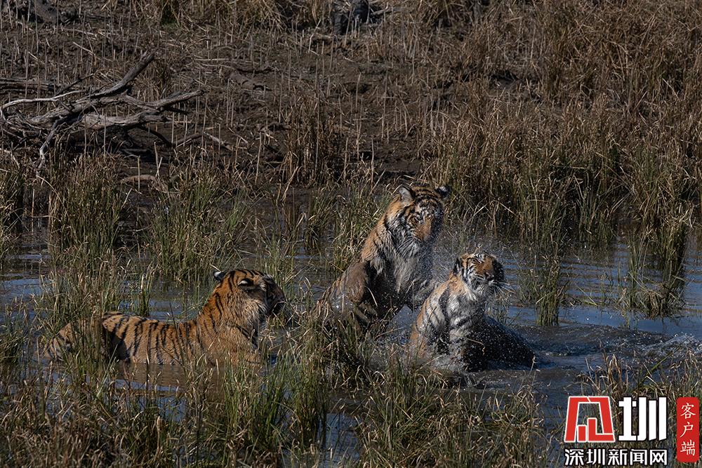 2020年7月27日,兩只老虎幼崽激烈的水上爭(zhēng)奪戰(zhàn)。