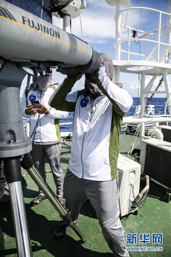 7月27日,科研人員在科考船上觀察動物。新華社記者張麗蕓攝