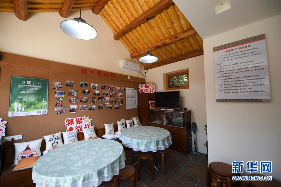 北京市東城區(qū)雨兒胡同30號院內(nèi),騰退后的房子改造成的“槐香客廳”,成為居民議事、活動的公共空間(5月13日攝)。新華社記者鞠煥宗攝