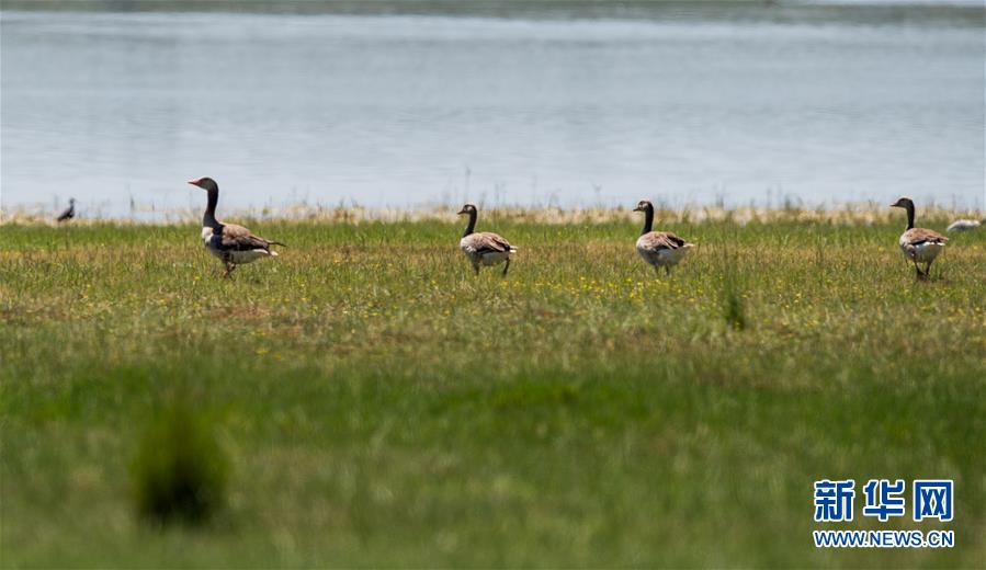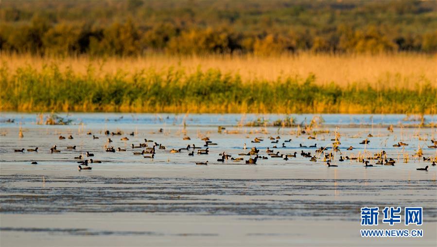 7月28日,灰雁在桃力廟—阿拉善灣海子覓食。鄂爾多斯?jié)竦匚挥趲觳箭R沙漠、毛烏素沙地接壤地帶,2002年被列入國際重要濕地名錄。從2006年開始,由于濕地湖面萎縮、湖心島消失,在此筑巢繁殖的世界瀕危物種遺鷗幾近消失。近年來,當(dāng)?shù)夭扇《喾N治理措施,濕地生態(tài)環(huán)境逐步好轉(zhuǎn)。2019年起,濕地內(nèi)的桃力廟—阿拉善灣海子迎來遺鷗大規(guī)模“回歸”。如今,40多種鳥類在此棲息,鄂爾多斯?jié)竦刂匦鲁蔀轼B類的樂園。新華社記者連振攝