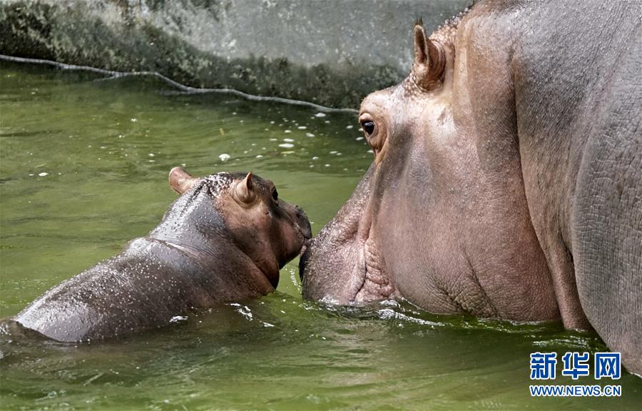 北京動物園的河馬母子在恒溫水池內(nèi)乘涼(7月30日攝)。炎炎夏日,北京動物園根據(jù)動物生活習(xí)性,為動物配備了自動噴淋噴霧、空調(diào)籠舍、恒溫水池、遮陽棚等各類避暑設(shè)施,同時(shí)還準(zhǔn)備了西瓜等降溫食品,保障動物平安舒適地度過伏天。新華社記者李欣攝