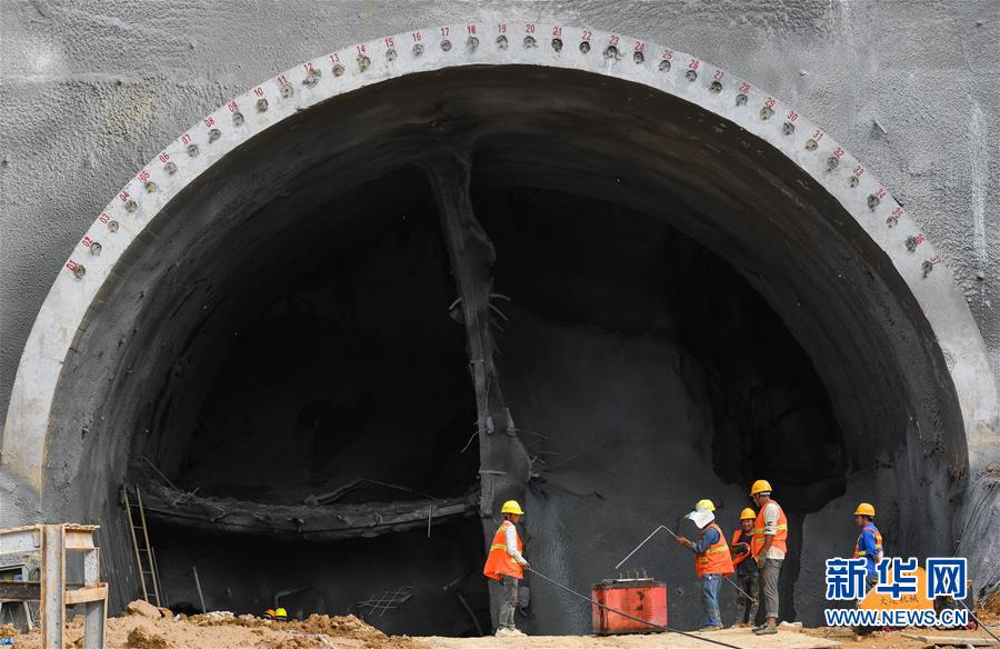 7月30日,中鐵四局施工人員在潮州東聯(lián)絡線馬頭山隧道進行仰拱鋼筋焊接。新華社記者劉大偉攝