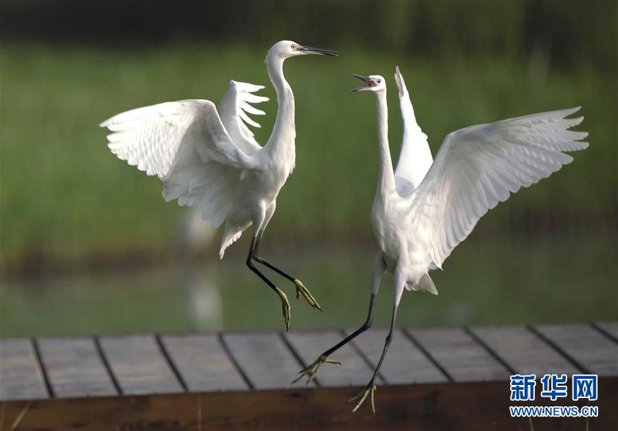8月3日,白鷺在唐山南湖公園飛舞。近日,大批鷺鳥飛抵河北唐山南湖公園,在此覓食、嬉戲。唐山南湖公園所在地曾是因采煤沉降形成的廢棄地,經(jīng)綜合治理,成為一座水域面積11.5平方公里、綠地面積16平方公里的生態(tài)公園。新華社記者楊世堯攝