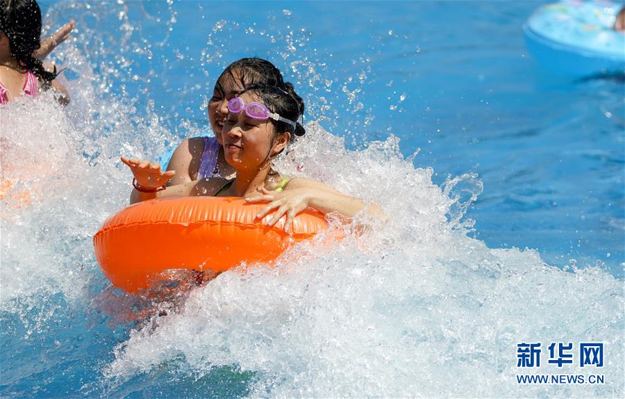 8月5日,重慶涪陵紅酒小鎮(zhèn)水上樂園內(nèi),市民在水中嬉戲。當日,重慶市氣象臺再次發(fā)布“高溫橙色預警信號”,重慶大部分海拔400米以下地區(qū)日最高氣溫將升至37℃以上,局地可達40℃以上。許多重慶市民涌進當?shù)氐乃蠘穲@和泳池,在水中享受夏季的清涼。新華社記者劉潺攝