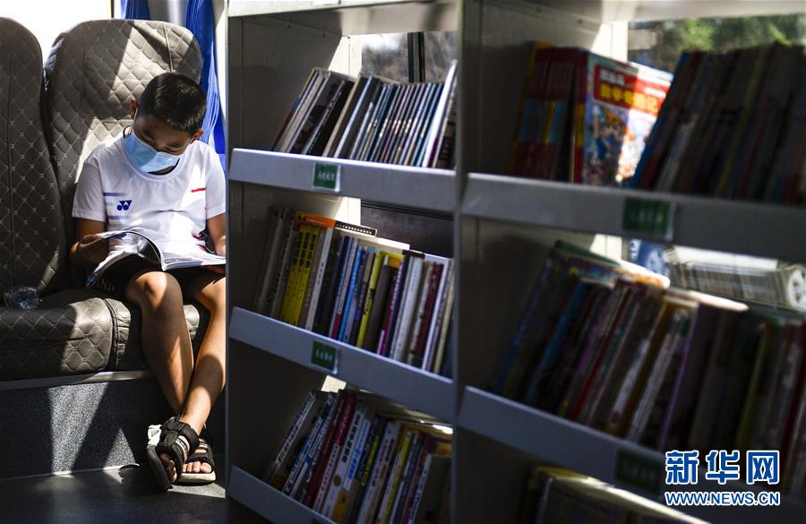 8月5日,小讀者在“流動(dòng)圖書館”里看書。三千冊(cè)圖書,一輛大巴車,穿梭在城市的街頭巷尾。在吉林長春,長春市圖書館利用流動(dòng)圖書車,定期在市內(nèi)15個(gè)固定服務(wù)點(diǎn)間巡回流動(dòng),為市民提供便捷的圖書借閱服務(wù)。新華社記者許暢攝