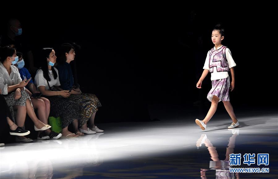 8月7日,小模特在T臺上展示童裝。當日,2020中國(河南)國際大學生時裝周舉行童裝設計專場展示。8月5日至7日,2020中國(河南)國際大學生時裝周在河南省新密市豫發(fā)密蘭小鎮(zhèn)舉行。新華社記者朱祥攝