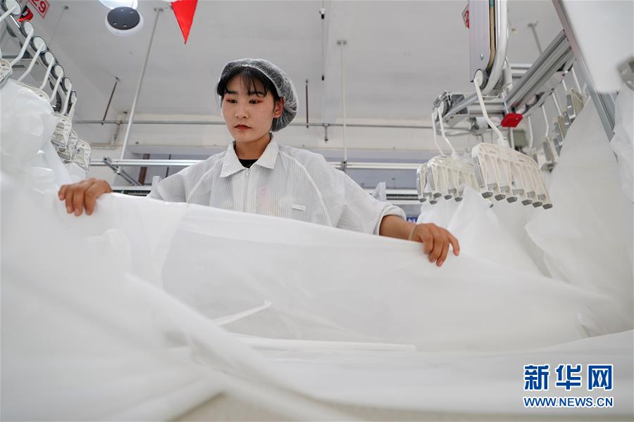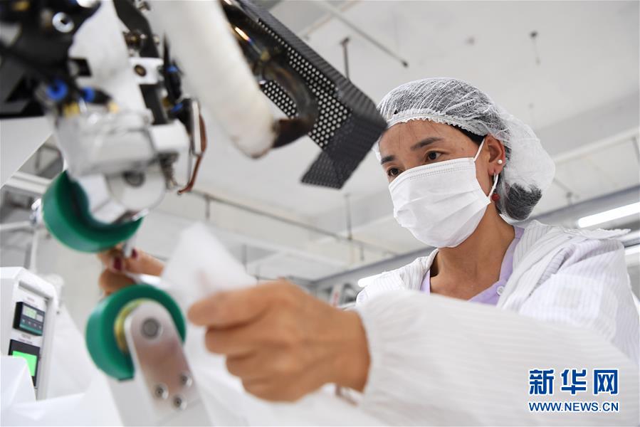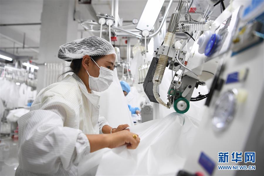 8月9日,甘肅拓奇扶貧車間的員工在服裝加工生產(chǎn)線上作業(yè)。甘肅拓奇扶貧車間位于甘肅省臨夏回族自治州積石山縣,是依托東西部扶貧協(xié)作平臺引進(jìn)的服裝加工企業(yè)。扶貧車間建成投產(chǎn)以來帶動就業(yè)近300人,其中吸納建檔立卡貧困戶就業(yè)110人,實現(xiàn)了貧困群眾就地就近就業(yè)增收的目的,為助推當(dāng)?shù)孛撠毠约翱h域經(jīng)濟發(fā)展發(fā)揮了重要作用。新華社記者陳斌攝。