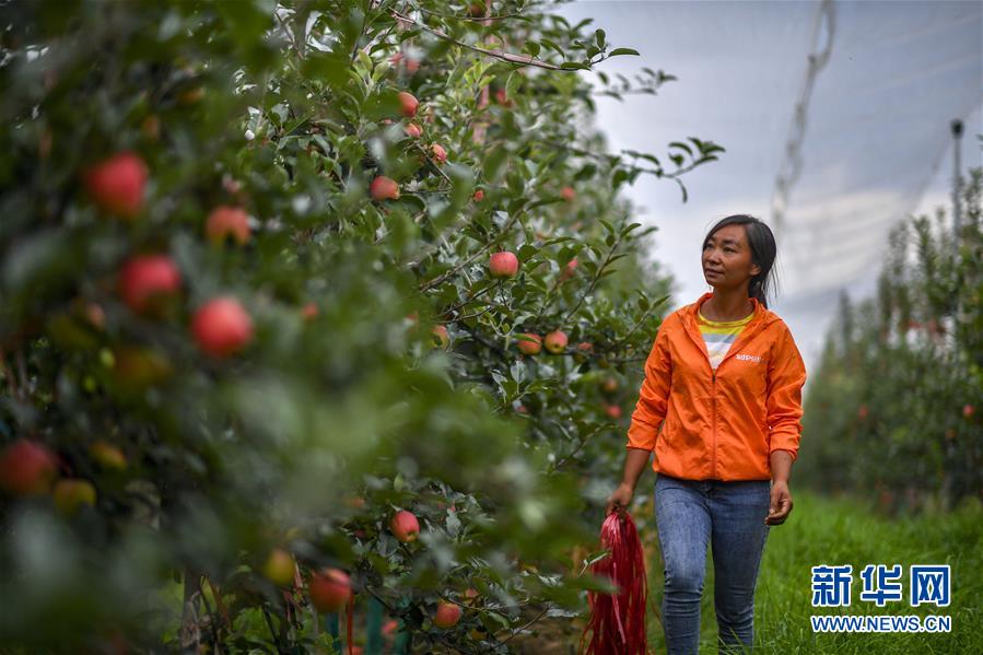 8月8日,昭通超越萬畝蘋果基地工人甄全米在蘋果園工作。近年來,云南省昭通市確立以蘋果產(chǎn)業(yè)為主導(dǎo)的現(xiàn)代農(nóng)業(yè)產(chǎn)業(yè)發(fā)展戰(zhàn)略。目前,該市蘋果種植面積近80萬畝,覆蓋全市20余個鄉(xiāng)鎮(zhèn),果農(nóng)種植蘋果年人均收入4000元以上,推動30多萬果農(nóng)依托蘋果產(chǎn)業(yè)實(shí)現(xiàn)脫貧致富,半城蘋果滿城香的“蘋果之城”正在烏蒙山區(qū)奮力崛起。新華社記者江文耀攝。