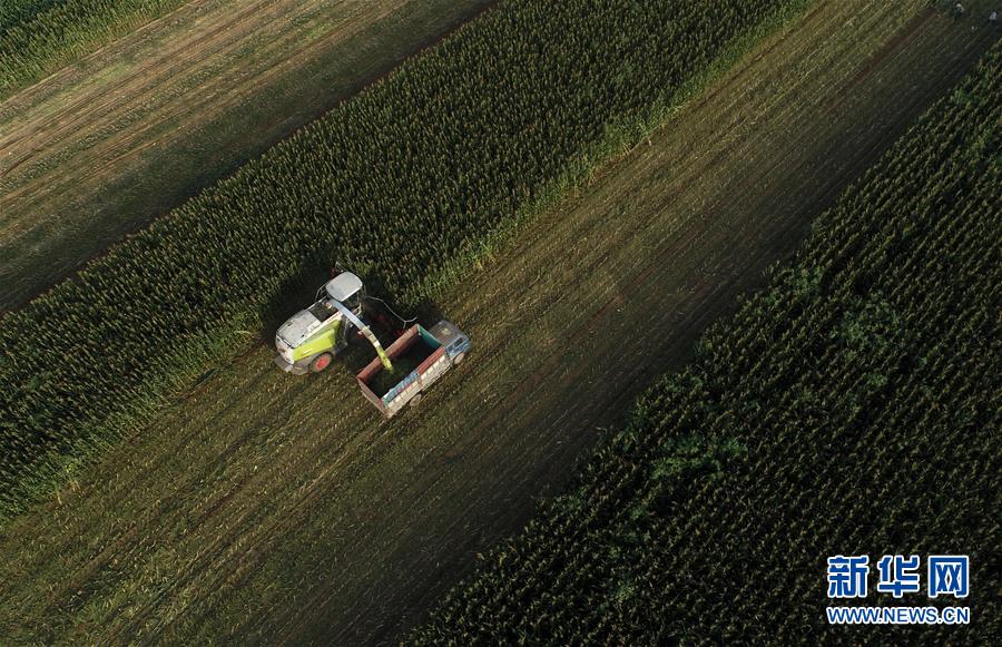 8月11日,灤南縣馬城鎮(zhèn)湛店子村的農(nóng)民使用大型機械收獲青貯玉米(無人機照片)。近日,河北省灤南縣的12萬畝青貯玉米陸續(xù)開始收獲,為當?shù)啬膛pB(yǎng)殖提供新鮮優(yōu)質(zhì)飼料。作為河北省奶牛養(yǎng)殖大縣,灤南縣近年來大力推廣奶牛青貯玉米喂養(yǎng)模式,引導(dǎo)農(nóng)民種植青貯玉米,促進農(nóng)民增收。新華社記者楊世堯攝