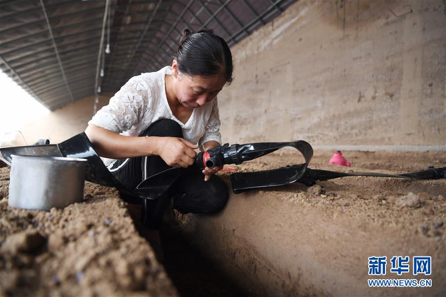 8月11日,在甘肅省臨夏回族自治州臨夏縣先鋒鄉(xiāng)前韓村,搬遷戶朱懷蘭在日光溫室內(nèi)勞作。近年來(lái),甘肅省臨夏回族自治州臨夏縣把易地扶貧搬遷作為打贏脫貧攻堅(jiān)戰(zhàn)的重要任務(wù),科學(xué)推進(jìn)易地扶貧搬遷和脫貧攻堅(jiān)工作。為了讓搬遷群眾能夠安居樂(lè)業(yè),當(dāng)?shù)卣⒅胤龀趾罄m(xù)產(chǎn)業(yè)發(fā)展,引導(dǎo)搬遷群眾發(fā)展日光溫室、布鞋加工、觀光農(nóng)業(yè)、特色種養(yǎng)殖等產(chǎn)業(yè),幫助搬遷群眾實(shí)現(xiàn)就近就業(yè)、拓寬增收渠道,確保搬遷群眾“搬得出、穩(wěn)得住、有事做、能致富”。新華社記者陳斌攝