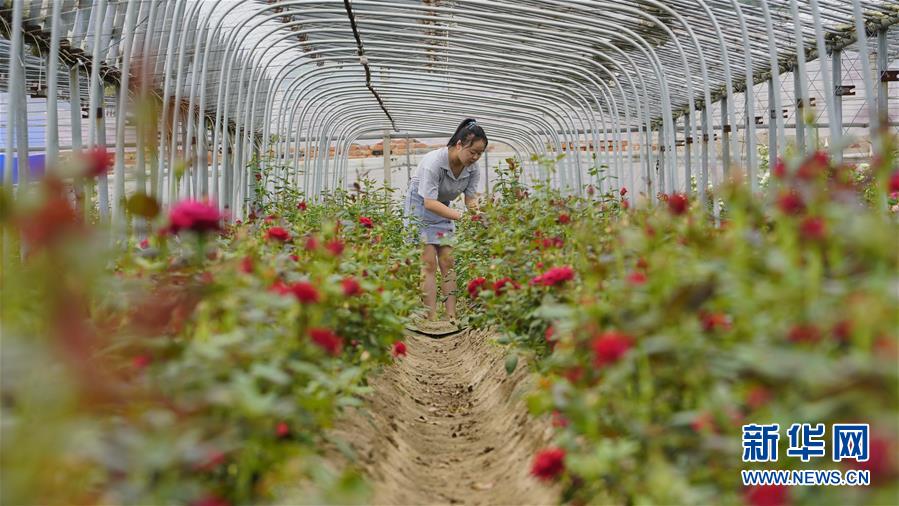 8月12日,河北省灤州市茨榆坨鎮(zhèn)謝各莊村花農(nóng)在查看玫瑰長勢。新華社記者 牟宇 攝