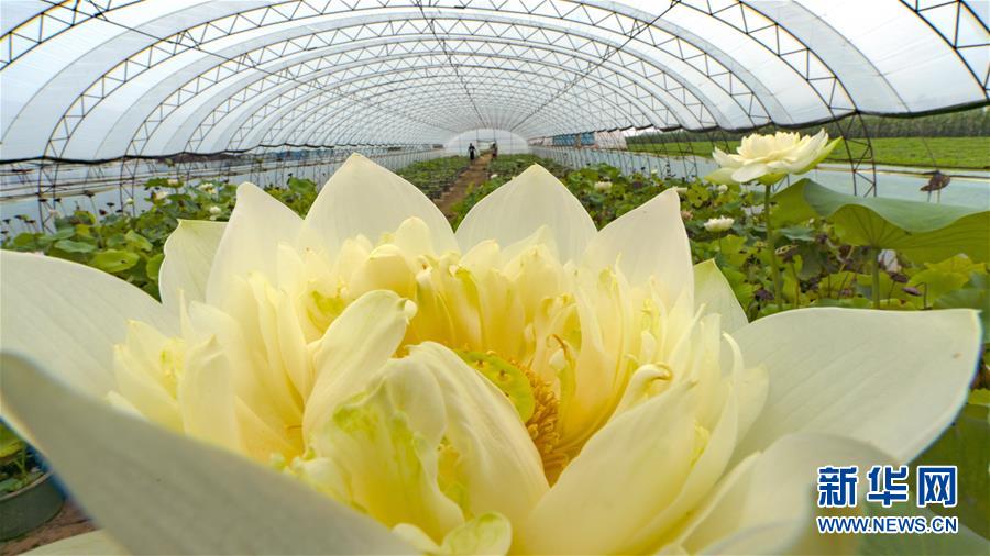 8月12日,河北省灤州市茨榆坨鎮(zhèn)草塘坨村花農(nóng)在大棚內(nèi)打理種植的蓮花。新華社記者 牟宇 攝