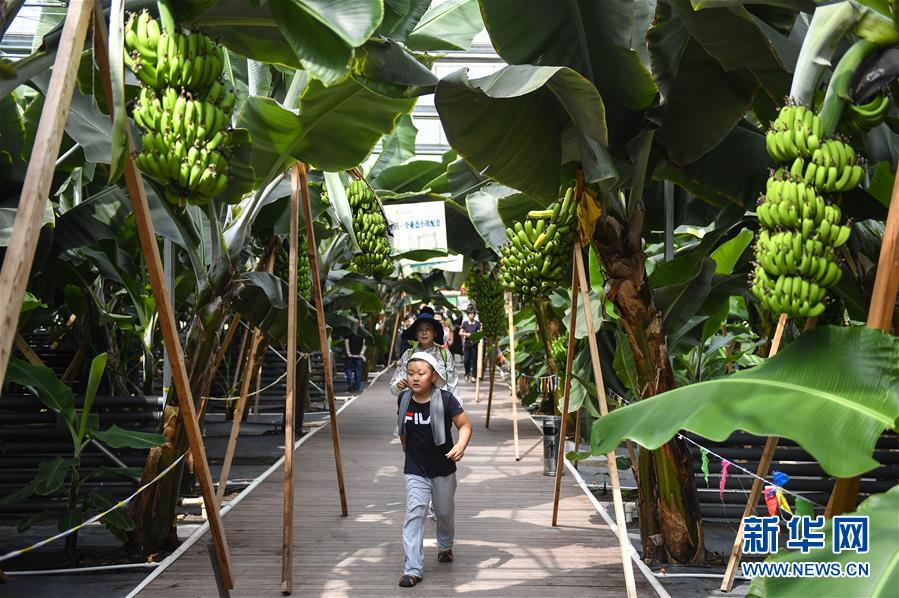 在吉林省永吉縣萬(wàn)昌鎮(zhèn)宇豐紅果木瓜產(chǎn)業(yè)園,游客在生態(tài)觀光采摘大棚內(nèi)參觀游覽(8月12日攝)。新華社記者 許暢 攝