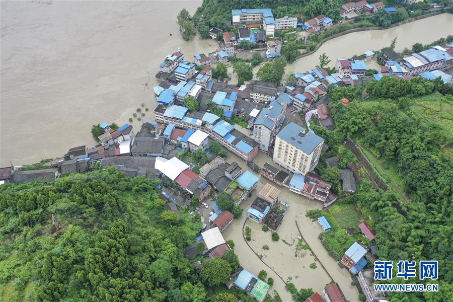 8月13日,在重慶市潼南區(qū)米心鎮(zhèn),涪江水位明顯上漲,洪水倒灌進場鎮(zhèn)(無人機照片)。受上游強降雨影響,嘉陵江近日出現(xiàn)明顯漲水過程,“嘉陵江2020年第1號洪水”已在嘉陵江支流涪江形成。重慶市正式啟動洪水防御Ⅱ級應急響應。據(jù)初步統(tǒng)計,截至13日16時30分,位于涪江畔的重慶市潼南區(qū),沿涪江7個鎮(zhèn)街不同程度受災,受災人數(shù)8209人,轉移人口6658人,農作物受災面積5579畝。新華社記者黃偉攝