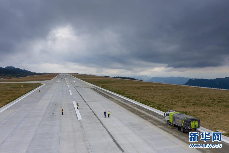8月12日,校飛正式開(kāi)始前一天,工作人員對(duì)仙女山機(jī)場(chǎng)跑道路面進(jìn)行清潔(無(wú)人機(jī)照片)。8月13日,位于重慶武隆區(qū)的仙女山機(jī)場(chǎng)飛行校驗(yàn)工作正式開(kāi)始。據(jù)介紹,重慶仙女山機(jī)場(chǎng)校飛時(shí)間大約需3至5天。重慶仙女山機(jī)場(chǎng)于2018年4月全面開(kāi)工,機(jī)場(chǎng)跑道長(zhǎng)2800米、寬45米,航站樓總面積6000平方米,投用后可滿(mǎn)足每年60萬(wàn)人次的旅客吞吐量。新華社記者劉潺攝