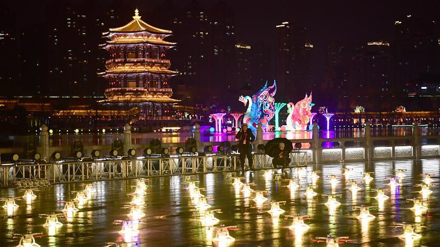 2月20日,300架無人機(jī)分為A、B兩組,通過動(dòng)態(tài)飛行和燈光變化在空中展示出多種不同造型,為市民和游客帶來新奇的新春視覺盛宴。