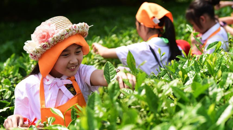 當(dāng)日,來自重慶市巴南區(qū)的300余名小學(xué)生來到位于巴南白象山的定心茶園,體驗茶葉采摘、制作,學(xué)習(xí)茶文化禮儀。