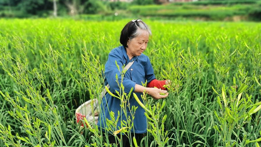 初夏時節(jié),湖南祁東黃土鋪鎮(zhèn),郁郁蔥蔥黃花菜漫山遍野。