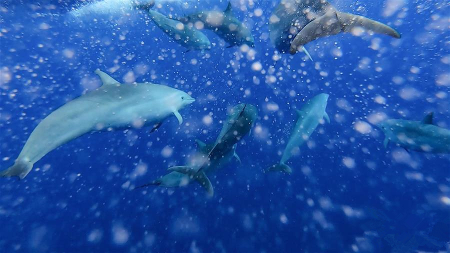 7月20日,我國(guó)科研人員在南海某海域目擊并記錄到短肢領(lǐng)航鯨群體與弗氏海豚群體混游現(xiàn)象。
