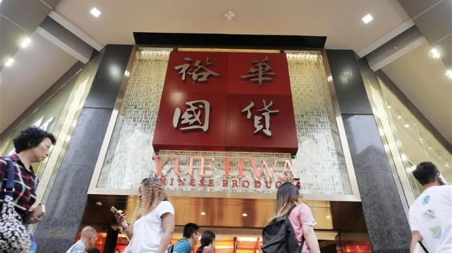 矗立在香港九龍彌敦道的一個紅底金字的大型招牌——裕華國貨,格外引人矚目攝。
