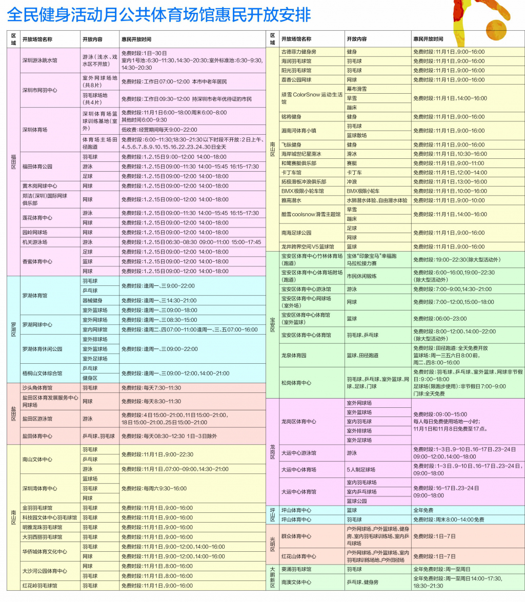 全市各區(qū)的公共體育場館、體育設(shè)施和學(xué)校體育場地也將免費或優(yōu)惠向市民開放,以滿足廣大群眾的健身需求,豐富群眾體育文化生活,吸引更多人群參加健身活動。值得注意的是,在今年免費開放的體育場館中,不但有市區(qū)級建設(shè)的大型體育中心、體育館,更有如機關(guān)游泳館、華僑城體育中心、古德菲力健身房等幾十余家社會體育場館,政府主導(dǎo),社會力量融入,全民健身范圍得以大幅擴大。