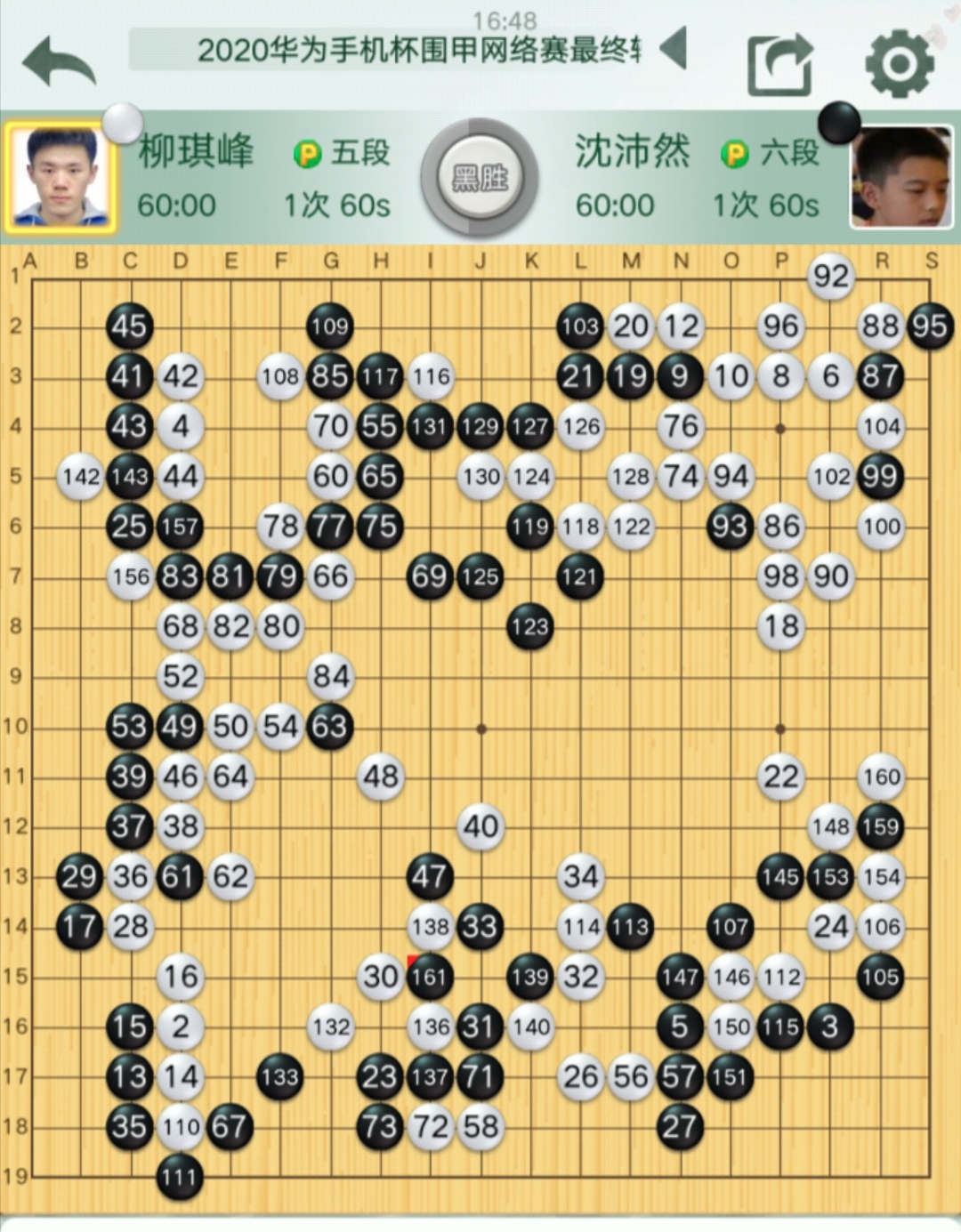 見(jiàn)圳客戶端、深圳新聞網(wǎng)2020年3月17日訊(記者 周錦春)下午2點(diǎn),2020年“華為手機(jī)杯”圍甲網(wǎng)絡(luò)熱身賽第七輪繼續(xù)進(jìn)行,此輪深圳宏發(fā)隊(duì)對(duì)陣上海清一隊(duì)。截止下午4點(diǎn)30分左右,深圳宏發(fā)隊(duì)悉數(shù)收官,最終以4:0全勝戰(zhàn)績(jī)闖過(guò)上海清一隊(duì)這一關(guān)。目前,深圳宏發(fā)隊(duì)七輪總積分為14分,在A組坐穩(wěn)小組第三,待A組另三場(chǎng)明日結(jié)束即可見(jiàn)分曉。最后一輪是AB兩組前兩名進(jìn)行同名次的決定賽,仍在騰訊野狐圍棋平臺(tái),時(shí)間是3月19日。