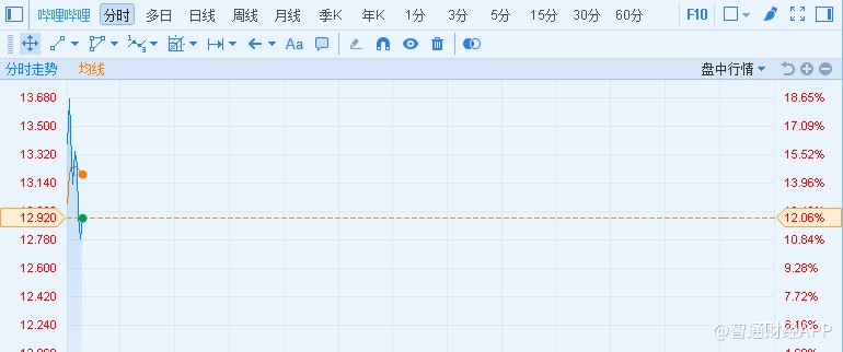 B站開盤漲超18%,現(xiàn)報(bào)12.92美元,漲12.06%。