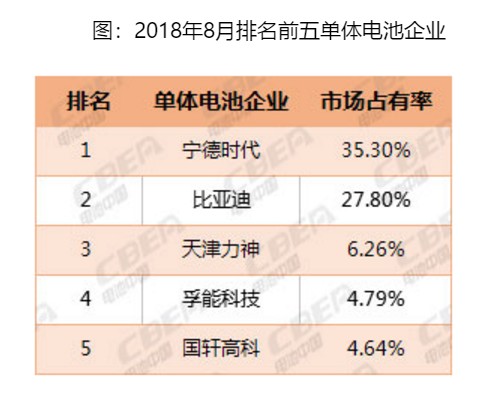 從電池企業(yè)來看,同上月相比,排名前三的企業(yè)沒有變化,行業(yè)龍頭地位企穩(wěn)。寧德時代以1.47Gwh的動力電池裝機量位列第一,占8月總裝機量的35.3%。比亞迪緊隨其后,動力電池裝機量為1.16Gwh,占比27.8%。而排名第三的天津力神為0.26Gwh,占比6.26%。(林淼)