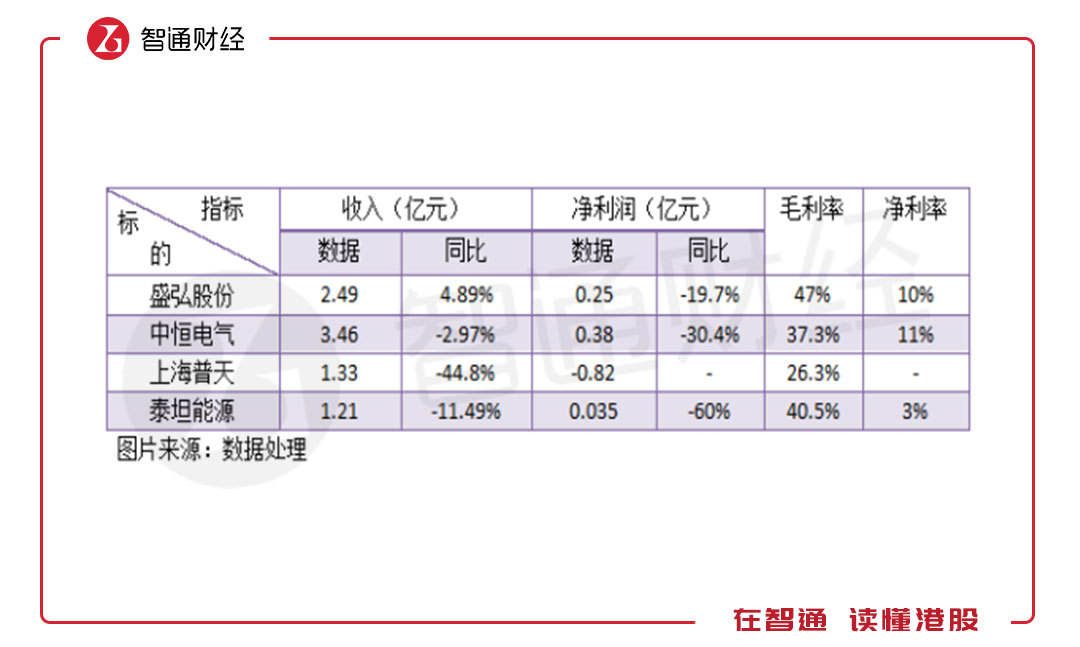 中游設(shè)備供應(yīng)商中,包括A股上市公司盛宏股份、中恒電氣、上海普天以及港股唯一一家充電樁供應(yīng)商泰坦能源技術(shù)(02188)。從收入及利潤(rùn)數(shù)據(jù)上看,2018年上半年參與者收入和凈利潤(rùn)均呈現(xiàn)較大幅度下滑,凄慘的很,要知道新能源汽車(chē)銷(xiāo)量增長(zhǎng)了一倍多,且參與者的利潤(rùn)率也很低。