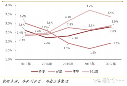 其邏輯之一是,特步在2015年開啟變革之后,從品牌定位、產品、渠道、運營四方面進行了全方位變革,公司從一家產品公司轉型為一家品牌公司。2017年末,公司用1.2億元一次性回購2015年前生產的產品,徹底清除歷史包袱,為業(yè)績反轉奠定基礎。