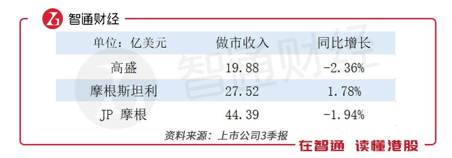 從第3季度營(yíng)收規(guī)模上看,高盛墊底,JP摩根的營(yíng)收和利潤(rùn)都是最大,摩根斯坦利凈利潤(rùn)最高??磥?lái),“小摩”(JP摩根)不是真的“小”,“大摩”(摩根斯坦利)也不是真的“大”。
