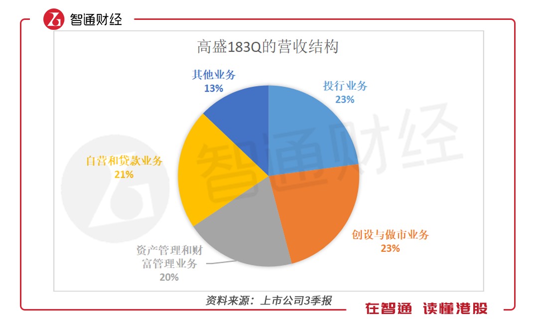 在業(yè)績(jī)對(duì)比前,我們先了解下美國(guó)券商的營(yíng)業(yè)收入結(jié)構(gòu),以高盛為例,高盛在3季報(bào)中公司業(yè)務(wù)分為四個(gè)板塊,這四個(gè)板塊跟中國(guó)券商的業(yè)務(wù)對(duì)照如下: