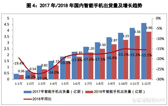 三、12月智能手機(jī)出貨量同比下降17.0%