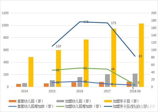 以下為紅黃藍(lán)2014年以來直營(yíng)及加盟幼兒園和親子園的情況:
