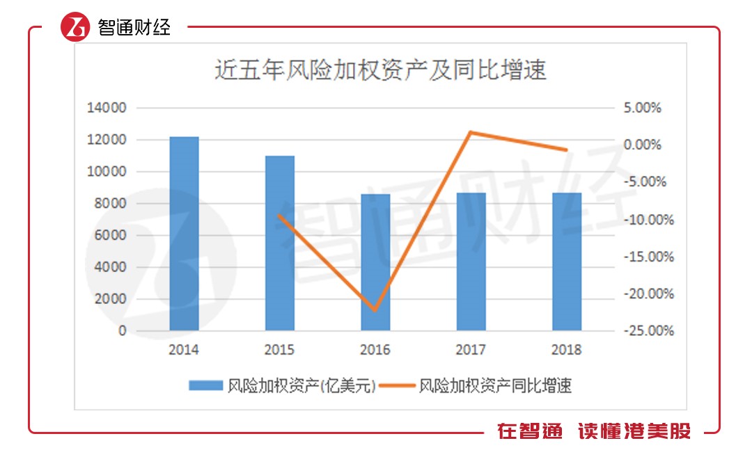 風險加權資產(chǎn)方面表現(xiàn)與總資產(chǎn)類似,于2017年大幅增長,至去年有所回落。據(jù)智通財經(jīng)APP了解,2018年,匯豐控股風險加權資產(chǎn)達8653.18億美元,同比下降0.69%。
