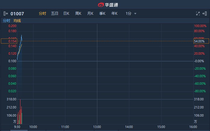 早盤快速拉升龍輝國際控股(01007)一度漲70%