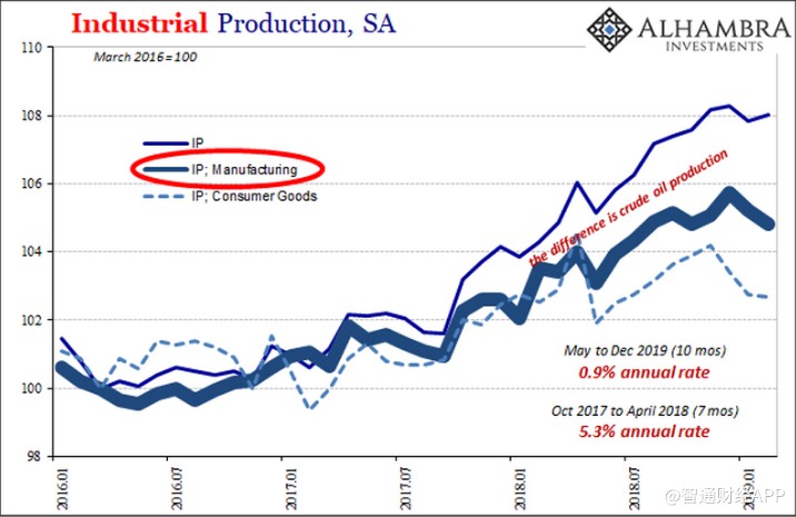 一個(gè)重要原因就是石油。美國(guó)國(guó)內(nèi)能源生產(chǎn)繼續(xù)推動(dòng)整個(gè)行業(yè)。根據(jù)最新的估計(jì),美國(guó)工業(yè)生產(chǎn)在過去幾個(gè)月,即2018年12月、2019年1月和2月出現(xiàn)整體下滑。相比之下,德國(guó)已經(jīng)增速放緩了至少9個(gè)月。